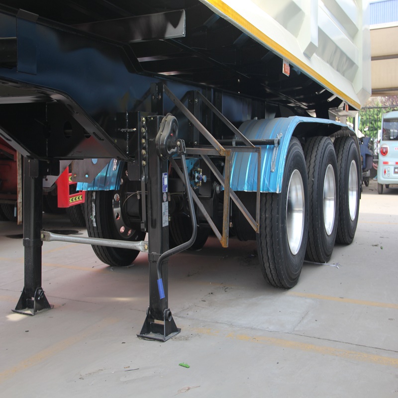 The trailer’s frame is typically made of high-strength steel to withstand heavy loads and the stresses of dumping.