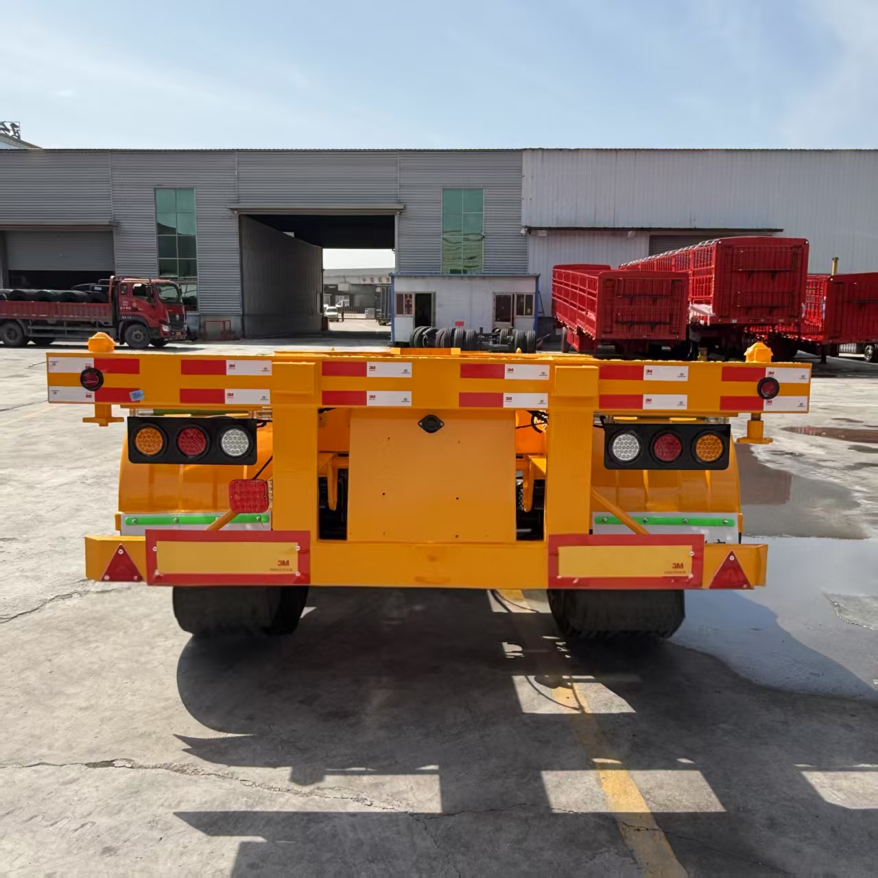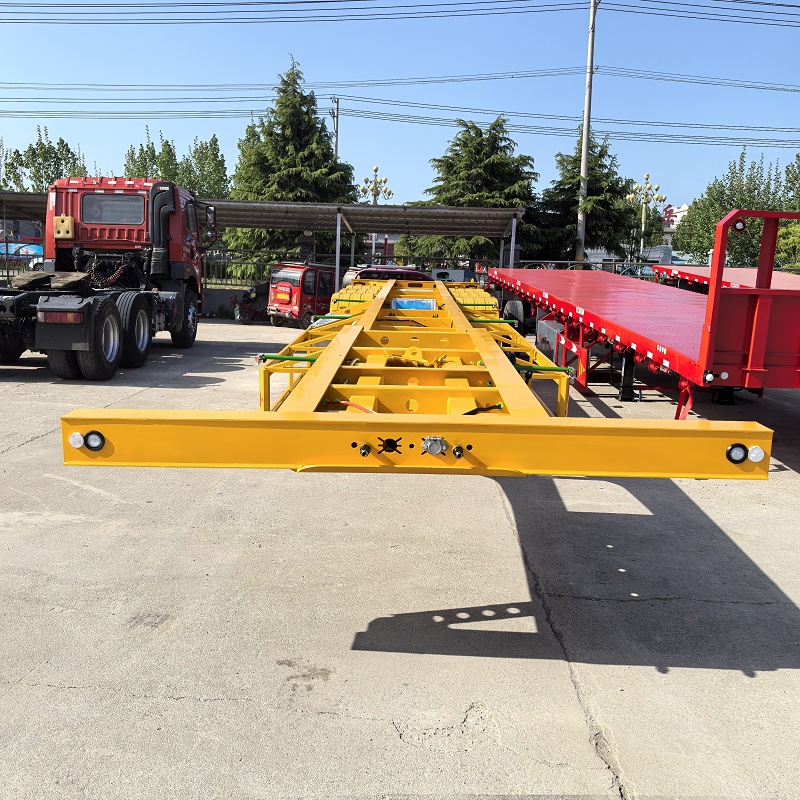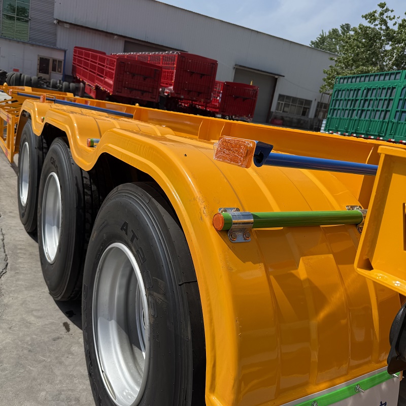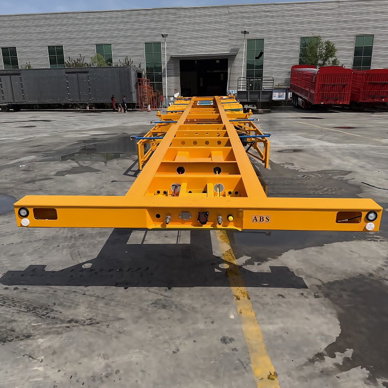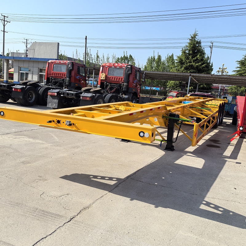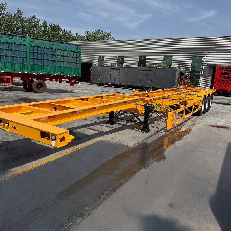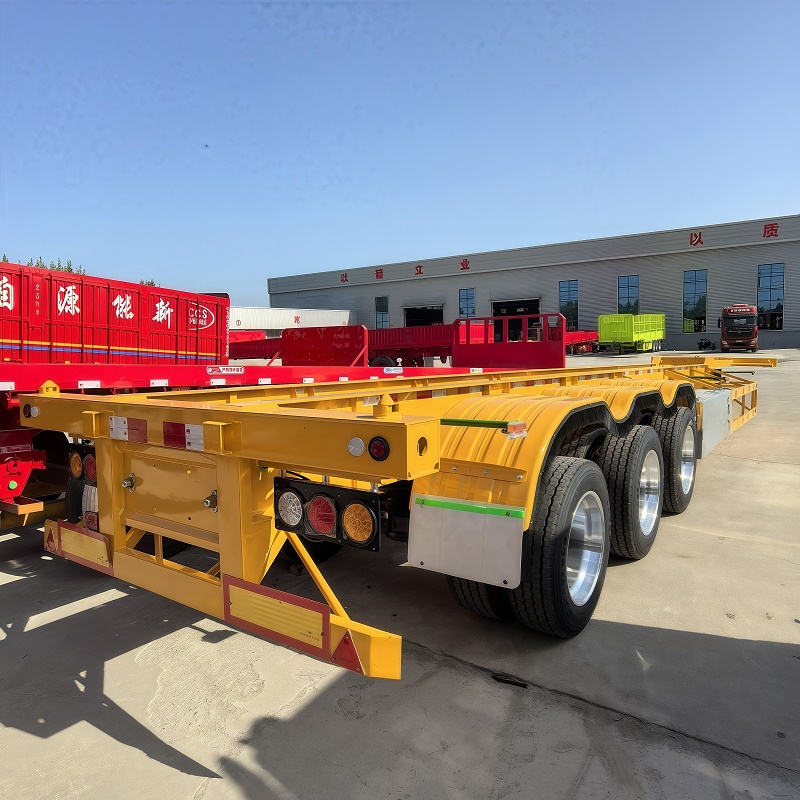 Three axle skeleton container transport truck semi-trailer: